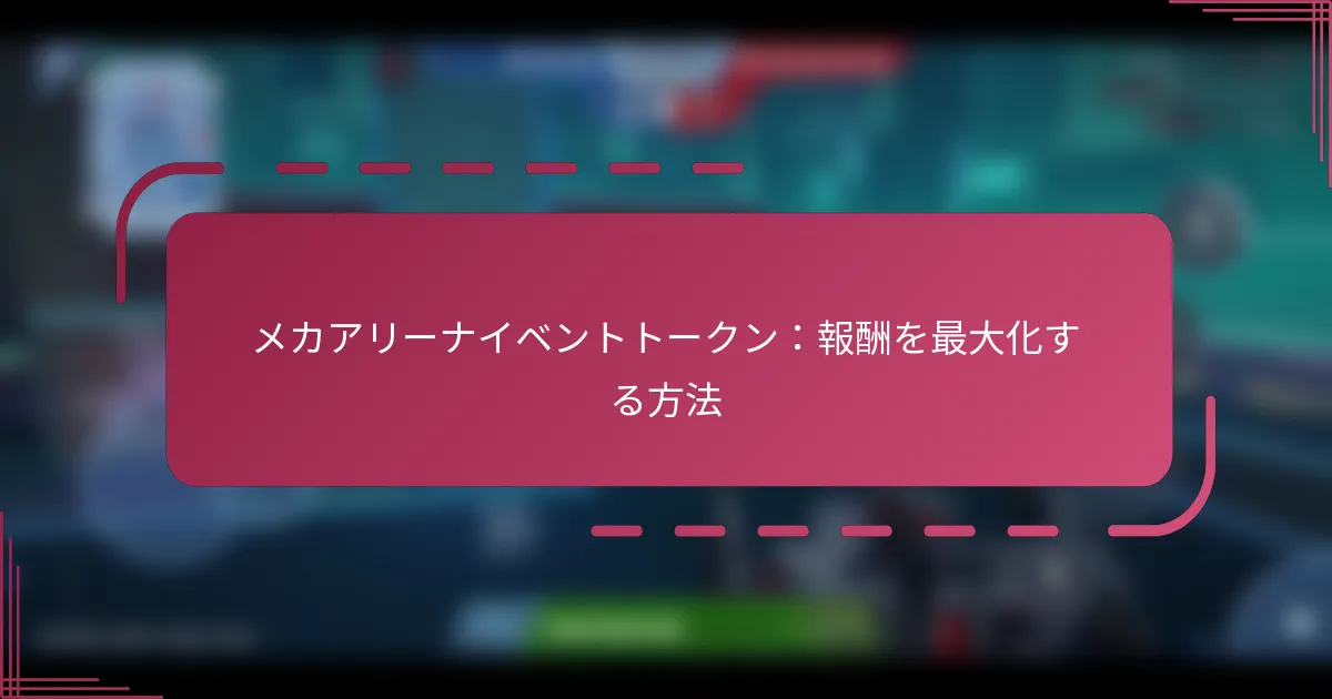 Mech Arenaのイベントトークンは、特定のイベント中に獲得できるユニークなゲーム内通貨で、プレイヤーがゲームプレイ体験を向上させるさまざまな報酬をアンロックすることを可能にします。トークンの獲得を最大化するためには、特別なイベントに参加し、ミッションを完了し、コミュニティトーナメントに参加しながら、トークンを賢く管理することが重要です。高価値の報酬を優先し、支出のタイミングを考えることで、ゲームプレイの可能性を大幅に向上させることができます。 Mech Arenaのイベントトークンとは? Mech Arenaのイベントトークンは、特定のイベント中にプレイヤーが獲得する特別なゲーム内通貨です。これらはさまざまな報酬と交換でき、ゲームプレイを向上させ、アップグレードやカスタマイズの機会を提供します。 イベントトークンの定義と目的 イベントトークンは、Mech Arenaにおけるユニークな通貨の一種で、期間限定のイベントに参加するプレイヤーに報酬を与えるために設計されています。主な目的は、参加を促進し、通常のゲームプレイでは入手できない独占アイテムをプレイヤーに提供することです。 これらのトークンは、イベントチャレンジの完了、試合の勝利、特別なゲームモードへの参加など、さまざまな活動を通じて獲得できます。これにより、プレイヤーはこれらのイベント中に積極的に参加し、ゲームを楽しむことが奨励されます。 ゲームプレイにおけるイベントトークンの機能 ゲームプレイ中、イベントトークンは収集され、特定のイベントショップやストアで使用されます。プレイヤーはこれらを使用して、独占アイテム、アップグレード、または通常の通貨では入手できない特別なメカを購入できます。 イベントトークンの利点を最大化するために、プレイヤーはイベント期間中にイベントチャレンジを完了し、試合に参加することに集中すべきです。この戦略により、イベントが終了する前に貴重な報酬と引き換えられる十分なトークンを蓄積できます。 イベントトークンで得られる報酬の種類 イベントトークンは、プレイヤーの体験や能力を向上させるさまざまな報酬と交換できます。一般的な報酬には以下が含まれます: メカの独占スキン 武器や装備のアップグレード イベント中のみ入手可能な特別なメカ ゲーム内通貨や資源 これらの報酬は、メカの美的魅力を向上させるだけでなく、戦闘におけるパフォーマンスも向上させるため、イベントトークンは熱心なプレイヤーにとって貴重な資産となります。 他のゲーム内通貨との比較 イベントトークンは、通常のゲームプレイを通じて獲得できるクレジットやコインなどの標準的なゲーム内通貨とは異なります。標準通貨は日常的な購入に使用されるのに対し、イベントトークンは特定の期間限定イベントに特化しており、ユニークな報酬を提供します。 プレイヤーは、イベント中にイベントトークンを獲得することを優先すべきです。なぜなら、標準通貨では購入できない独占アイテムへのアクセスを提供するからです。これにより、ゲームプレイ体験を向上させたいプレイヤーにとって特に価値があります。 一般的な別名と用語 Mech Arenaコミュニティ内では、イベントトークンはさまざまな名前や略語で呼ばれることがあります。一般的な用語には「イベント通貨」、「イベントポイント」、または単に「トークン」が含まれます。これらの用語を理解することで、プレイヤーはイベント参加に関する議論や戦略をナビゲートしやすくなります。 用語に慣れることで、プレイヤーはイベントトークンを効果的に獲得し、使用する機会を特定するのに役立ち、特別なイベント中のゲーム体験を最大限に活用できます。 Mech Arenaでイベントトークンを獲得するには? Mech Arenaのイベントトークンは、特別なイベントへの参加、ミッションの完了、コミュニティトーナメントへの参加、ゲーム内購入など、さまざまな活動を通じて獲得できます。トークンの獲得を最大化するには、戦略的な参加と一貫したゲームプレイが必要です。 特別なイベントやチャレンジへの参加 特別なイベントやチャレンジは、イベントトークンを獲得するための絶好の機会です。これらのイベントは、完了時にプレイヤーにトークンを報酬として与えるユニークなゲームプレイモードや目標を特徴としています。イベントスケジュールに注意を払い、積極的に参加して獲得を最大化しましょう。 これらのイベントの多くは期間限定のオファーを含むため、利用可能になったらすぐに参加することが重要です。チャレンジを完了することでトークンを獲得できるだけでなく、ゲームプレイ体験を向上させる独占報酬もアンロックできます。 デイリーおよびウィークリーミッションの完了 デイリーおよびウィークリーミッションは、イベントトークンの信頼できる供給源です。毎日、プレイヤーは全体のトークン数に貢献する特定のタスクを完了でき