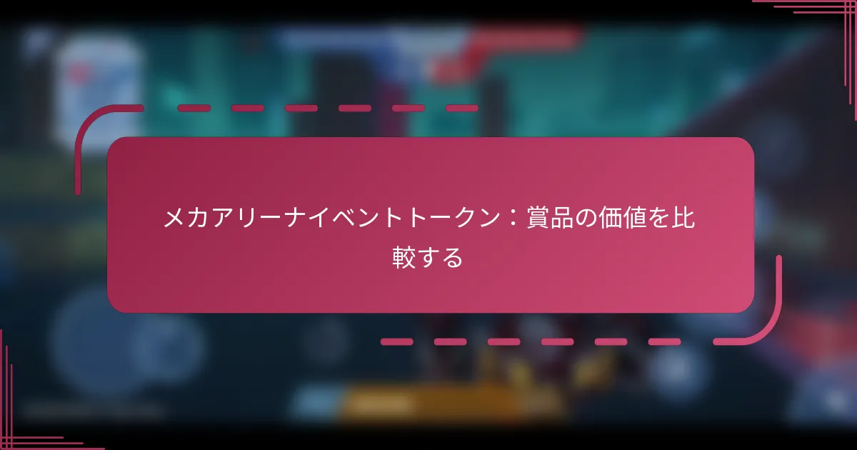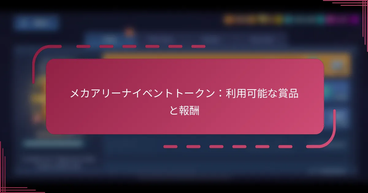 Mech Arenaのイベントトークンは、特別なイベントに参加し、さまざまな報酬をアンロックするための重要なゲーム内通貨です。これらのトークンは、レアリティや有用性が異なる賞品と交換でき、ゲームプレイやカスタマイズオプションを向上させます。異なるトークン賞品の価値を理解することで、プレイヤーは報酬を最大化し、ゲーム体験を向上させるための情報に基づいた選択を行うことができます。 Mech Arenaのイベントトークンとは何か、どのように機能するのか? Mech Arenaのイベントトークンは、特別なイベントに参加し、さまざまな報酬をアンロックするために使用されるゲーム内通貨です。これらのトークンは、プレイヤーに独占アイテムやアップグレードを獲得する機会を提供することで、ゲームプレイを向上させます。 イベントトークンの定義と目的 イベントトークンは、Mech Arena内でのユニークな通貨として機能し、特に期間限定のイベント中に使用するために設計されています。その主な目的は、参加を促し、これらのイベントへの関与に対してプレイヤーに報酬を与えることです。 プレイヤーは、イベントトークンをスキン、武器、その他の通常のゲームプレイでは入手できない強化アイテムなど、さまざまな賞品と交換できます。これにより、イベントに対する緊急感と興奮が生まれます。 ゲーム内でのイベントトークンの獲得方法 プレイヤーは、特定のイベントに参加し、関連するチャレンジを完了することで、いくつかの方法でイベントトークンを獲得できます。たとえば、イベント中に試合に勝ったり、特定のマイルストーンを達成したりすることで、報酬としてトークンを得ることができます。 さらに、プレイヤーはデイリーログインボーナスの一環として、または特別なプロモーションを通じてトークンを受け取ることがあります。これらの獲得方法は、ゲームへの継続的なプレイと関与を促します。 イベントトークンの使用制限 イベントトークンは通常、指定されたイベント中に使用することに制限されており、これらの時間枠外では使用できません。この制限は、プレイヤーがイベント期間中に積極的に参加し、トークンの使用を最大化する必要があることを強調しています。 さらに、特定の報酬には特定の数のトークンが必要であり、その価値に応じて大きく異なる場合があります。プレイヤーは、望ましい報酬を取得できるように、トークンの使い方を慎重に計画する必要があります。 イベントトークンを提供するイベントの頻度 Mech Arenaは定期的にイベントを開催し、イベントトークンを提供しています。これらのイベントは、テーマや期間が異なり、プレイヤーに新しいチャレンジやトークンを獲得する機会を提供します。 プレイヤーは、今後のイベントについての発表やゲーム内通知に注意を払い、参加がトークンを効果的に獲得し、利用するための鍵であることを理解する必要があります。 ゲームプレイに対するイベントトークンの影響 イベントトークンは、プレイヤーにパフォーマンスを向上させる独占アイテムへのアクセスを提供することで、ゲームプレイを大幅に向上させます。強力な武器やユニークなスキンを獲得することで、プレイヤーは戦闘で競争優位を得ることができます。 さらに、トークンを獲得する興奮や報酬への期待は、プレイヤーがゲームにより深く関与する動機となり、活気あるコミュニティを育み、プレイヤー間の社会的な交流を促進します。 Mech Arenaのイベントトークンでどのような賞品が得られるか? Mech Arenaのイベントトークンは、ゲームプレイやカスタマイズオプションを向上させるさまざまな賞品と交換できます。プレイヤーはイベントに参加することでトークンを獲得し、レアリティや有用性が異なる報酬をアンロックするために使用します。 入手可能な賞品の概要 Mech Arenaのイベントトークンで入手できる賞品には、ゲーム内通貨、メカのアップグレード、スキン、その他の貴重なアイテムが含まれます。これらの報酬は、ゲーム体験を向上させ、プレイヤーにパフォーマンスを改善するための選択肢を提供するように設計されています。 一般的な賞品には以下が含まれます: ゲーム内通貨(クレジット) 武器のアップグレード メカのスキン 特別イベントアイテム プレイヤーは、どの賞品が自分のゲームプレイスタイルやニーズに最も合致するかを優先する必要があります。なぜなら、いくつかのアイテムは他のアイテムよりも即時の利益を提供する場合があるからです。 レアリティに基づく賞品のカテゴリ Mech Arenaの賞品は、レアリティによって分類され、その価値や有用性に影響を与えます。レアリティのレベルには、一般的なアイテム、珍しいアイテム、レアアイテム、エピックアイテムが含まれます。 レアリティ 例 典型的なトークンコスト 一般的 基本的な武器のアップグレード 数十トークン 珍しい 標準的なメカのスキン 数十ト