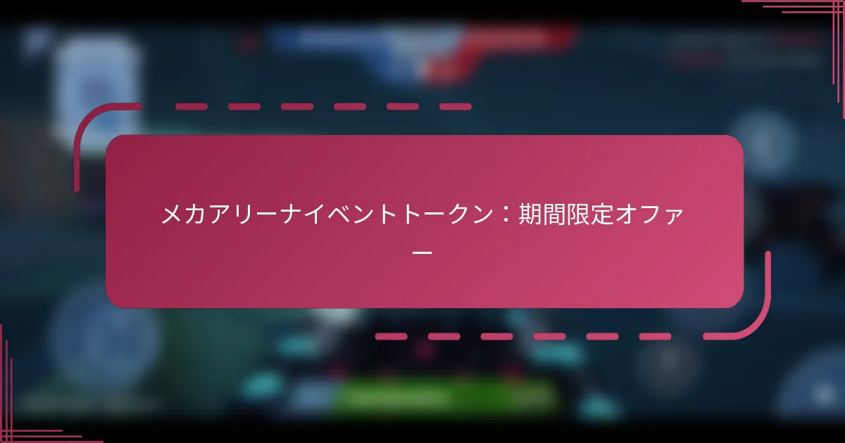 メカアリーナのイベントトークンは、プレイヤーが期間限定のイベント中に獲得できる特別なゲーム内通貨であり、独占的な報酬をアンロックし、ゲームプレイを向上させるために不可欠です。現在、ユニークな報酬を提供するいくつかの期間限定オファーがあり、プレイヤーはゲーム体験や進行状況を大幅に改善することができます。これらのトークンを効果的に取得し、活用する方法を理解することは、パフォーマンスを向上させたいプレイヤーにとって大いに役立ちます。 メカアリーナのイベントトークンとは? メカアリーナのイベントトークンは、プレイヤーが期間限定のイベント中に獲得できる特別なゲーム内通貨です。これらのトークンは、独占的な報酬をアンロックし、ゲームプレイ体験を向上させるために重要です。 イベントトークンの定義と目的 イベントトークンは、メカアリーナ内でのユニークな通貨の形態であり、特に期間限定のイベントに関連しています。プレイヤーは、イベント期間中にさまざまなチャレンジやアクティビティに参加することで、これらのトークンを収集できます。 イベントトークンの主な目的は、通常のゲームプレイでは入手できない独占アイテム、アップグレード、報酬へのアクセスをプレイヤーに提供することです。これにより、特別なイベントへの参加とエンゲージメントが促進されます。 ゲームプレイにおけるイベントトークンの機能 イベントトークンは、イベント中に特定のタスクやチャレンジを完了することで獲得できます。例えば、試合に勝つことや特定の目標を達成することが含まれます。プレイヤーは、これらのトークンを使用して、ゲーム内ストアで期間限定オファーを購入できます。 トークンには通常、明確な有効期限が設定されており、プレイヤーはイベントが終了する前に使用する必要があります。これにより緊急性が生まれ、プレイヤーはイベント期間中にゲームに積極的に参加することが促されます。 プレイヤーの進行におけるイベントトークンの重要性 イベントトークンは、プレイヤーの進行において重要な役割を果たし、プレイヤーのメカの能力を向上させる強力なアップグレードやユニークなアイテムへのアクセスを可能にします。これにより、バトルでのパフォーマンスが向上し、より楽しいゲーム体験が得られます。 戦略的にイベントトークンを使用することで、イベントに参加しない他のプレイヤーに対して優位性を得ることができ、競争的な環境が促進されます。これにより、ゲームを進めたい真剣なプレイヤーにとって、これらのトークンを収集し活用することが不可欠になります。 イベントトークンの一般的な別名 メカアリーナコミュニティでは、イベントトークンは特定のイベントや文脈に応じてさまざまな名前で呼ばれることがあります。一般的な別名には「イベント通貨」、「チャレンジトークン」、「期間限定トークン」が含まれます。 これらの用語を理解することで、プレイヤーはイベントへの参加や報酬に関連する議論やリソースをより効果的にナビゲートできます。 ゲーム内通貨の分類 メカアリーナには、異なる機能を持ついくつかの種類のゲーム内通貨があります。主なカテゴリには、標準通貨、プレミアム通貨、イベントトークンが含まれます。 標準通貨:日常的な購入やアップグレードに使用されます。 プレミアム通貨:通常はリアルマネーで購入され、独占アイテムへのアクセスを提供します。 イベントトークン:期間限定イベントへの参加を通じて獲得され、特別な報酬に使用されます。 これらの通貨の違いを理解することで、プレイヤーはリソースを最適なゲームプレイのためにどのように投資するかについて、より良い判断を下すことができます。 現在、イベントトークンのために利用可能な期間限定オファーは何ですか? 現在、プレイヤーはメカアリーナでイベントトークンのためにいくつかの期間限定オファーを利用できます。これらのオファーは、ゲームプレイ体験や進行状況を大幅に改善するユニークな報酬や強化を提供します。 現在の期間限定オファーのリスト イベントトークンの現在のオファーには、独占的なスキン、強力な武器、ユニークなメカのアップグレードが含まれています。プレイヤーは、複数のアイテムを割引価格で組み合わせた特別なバンドルも見つけることができます。これらのオファーは、ゲームの美的および機能的な側面を強化することを目的としています。 独占的なスキン:このイベント中にのみ入手可能なメカのユニークなデザイン。 武器のアップグレード:バトルでのパフォーマンスを向上させる強化された武器。 バンドルディール:複数のアイテムに対して割引を提供する組み合わせオファー。 各期間限定オファーの期間 各期間限定オファーは特定の期間中利用可能で、通常は1〜2週間の範囲です。プレイヤーは、正確な開始日と終了日を確認するためにゲー