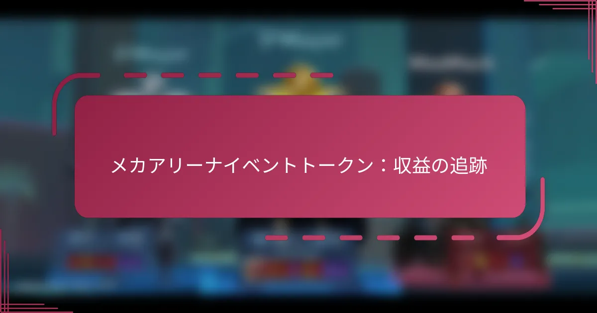メカアリーナのイベントトークンは、プレイヤーが期間限定のイベントに参加し、独自の報酬を獲得するためのユニークなゲーム内通貨です。これらのトークンの獲得状況を追跡することは、ゲームプレイ体験を最適化し、報酬を最大化するために重要です。ゲーム内の機能や外部ツールを利用することで、トークンの蓄積と支出を効果的に監視し、全体的なパフォーマンスを向上させることができます。 メカアリーナのイベントトークンとは? メカアリーナのイベントトークンは、期間限定のイベントに参加し、独自の報酬を獲得するために使用される特別なゲーム内通貨です。これらのトークンは、プレイヤーが通常の通貨では入手できないユニークなアイテムやアップグレードにアクセスできるようにすることで、ゲームプレイを向上させます。 イベントトークンの定義と目的 イベントトークンは、メカアリーナの特別なイベント中に使用するために特別に設計されたバーチャル通貨の一種です。これらは、プレイヤーが期間限定のチャレンジに参加し、ゲーム体験を大幅に向上させる報酬を得る手段として機能します。 イベントトークンの主な目的は、イベントへの参加を促進し、プレイヤーが特定のタスクやチャレンジを完了するように奨励することです。これらのトークンを獲得することで、プレイヤーはイベント限定のユニークなスキンや武器、その他の強化アイテムをアンロックできます。 ゲーム内でのイベントトークンの機能 メカアリーナでは、プレイヤーはイベント特有のミッションやチャレンジを完了することでイベントトークンを獲得できます。これらのトークンは、イベントショップで使用でき、通常のゲームプレイでは入手できないさまざまな独自のアイテムやアップグレードを提供します。 プレイヤーは、ゲーム内インターフェースを通じてイベントトークンの獲得状況や支出を追跡でき、どれだけのトークンを蓄積しているか、どの報酬が利用可能かを簡単に確認できます。この機能は、イベント中に獲得したトークンを最適に活用するための戦略的な計画を促します。 イベントトークンの一般的な別名 イベントトークンは、コミュニティ内で「イベント通貨」や「イベントクレジット」など、さまざまな名前で呼ばれることがあります。これらの別名は、プレイヤーの議論やフォーラムから生じることが多く、地域の好みや特定のイベントに基づいて用語が異なる場合があります。 使用される名前に関係なく、その機能は同じです:プレイヤーがイベント特有のコンテンツに参加し、独自の報酬を獲得する手段を提供することです。 イベントトークンと他のゲーム内通貨の違い イベントトークンは、クレジットやゴールドなどの標準的なゲーム内通貨とはいくつかの点で異なります。通常の通貨は日常的なゲームプレイを通じて獲得できるのに対し、イベントトークンは特定のイベントやチャレンジの間のみ入手可能です。 さらに、イベントトークンはその使用が制限されており、ユニークなアイテムが入手できるイベントショップにのみ使用できます。それに対して、標準通貨はゲーム全体でより広範な購入やアップグレードに使用できます。 イベントトークンがゲームプレイに与える影響 イベントトークンは、プレイヤーに独自のコンテンツへのアクセスを提供することで、ゲームプレイを大幅に向上させます。イベントトークンを通じて取得したアイテムは、戦闘において優位性を提供することがあり、強化された武器やプレイヤーの士気を高めるユニークなメカスキンなどがあります。 さらに、イベントの期間限定性は緊急感を生み出し、プレイヤーがゲームにより積極的に関与する動機付けとなります。これにより、プレイヤーの定着率が向上し、プレイヤーが独自の報酬を競い合うことで、より活気のあるゲームコミュニティが形成される可能性があります。 イベントトークンの獲得状況をどのように追跡できますか? メカアリーナでのイベントトークンの獲得状況を追跡することは、報酬を最大化し、進捗を理解するために不可欠です。ゲーム内の機能、サードパーティのアプリ、またはスプレッドシートを利用して、トークンの蓄積と支出を注意深く監視できます。 イベントトークンを追跡するためのゲーム内機能 メカアリーナは、プレイヤーがゲーム内で直接イベントトークンの獲得状況を監視できる組み込み機能を提供しています。メインメニューで現在のイベントトークンの残高を確認でき、イベントに参加するたびにリアルタイムで更新されます。 さらに、試合を完了した後にトークン獲得数を詳述した通知やポップアップが表示されることがよくあります。この即時のフィードバックは、イベント中の進捗を把握するのに役立ちます。 これらの機能を最大限に活用するために、定期的にトークンの残高を確認し、今後のイベントに対する目標と比較してください。 イ