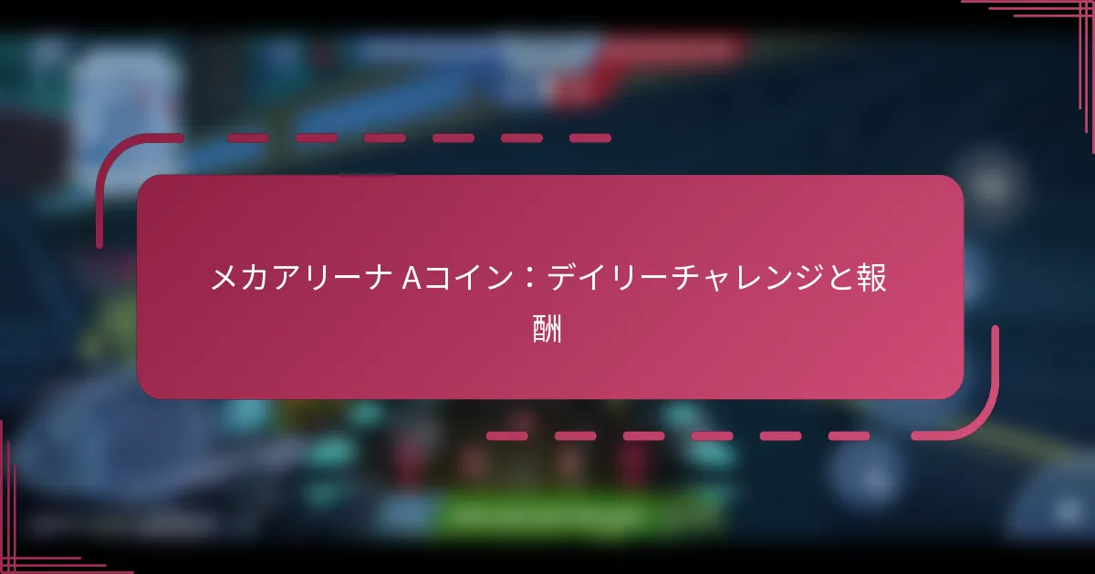 Aコインは、Mech Arenaにおいて重要なプレミアム通貨であり、プレイヤーがアップグレードやゲーム体験を向上させるための限定アイテムを購入することを可能にします。日々のチャレンジに参加することで、プレイヤーはAコインやその他の報酬を獲得でき、定期的なエンゲージメントを促進し、ゲーム内での全体的な進行に寄与します。 Mech ArenaにおけるAコインとは? Aコインは、Mech Arenaにおけるプレミアムなゲーム内通貨であり、主にさまざまなアイテムやアップグレードを購入することでゲームプレイを向上させるために使用されます。これらはゲームの経済において重要な役割を果たし、プレイヤーが限定コンテンツにアクセスし、メックを改善することを可能にします。 Aコインの定義と目的 Aコインは、プレイヤーがMech Arena内での取引を円滑にするために獲得または購入できる仮想通貨です。その主な目的は、プレイヤーに高度な装備、スキン、その他の強化を取得する手段を提供することで、ゲームプレイに大きな影響を与えることです。 これらのコインは、標準的なゲームプレイでは簡単には手に入らない機能をアンロックすることを可能にし、全体的なゲーム体験を向上させます。Aコインを使用することで、プレイヤーはメックをカスタマイズし、戦闘での競争優位を得ることができます。 ゲーム内でのAコインの機能 Aコインは、日々のチャレンジを完了したり、特別なイベントに参加したり、リアルマネーで直接購入することによって獲得できます。この柔軟性により、プレイヤーは自分のプレイスタイルや投資の好みに基づいて、これらのコインをどのように取得するかを選択できます。 一度獲得したAコインは、ゲーム内ストアで武器、メックのアップグレード、コスメティックな強化アイテムを購入するために使用できます。プレイヤーは、戦闘での効果を最大化するために、Aコインの使い方を戦略的に決定する必要があります。 ゲームプレイにおけるAコインの重要性 Mech ArenaにおけるAコインの重要性は過小評価できず、プレイヤーが効果的に競争する能力に直接影響を与えます。Aコインに投資するプレイヤーは、優れた装備やアップグレードにアクセスでき、試合でのパフォーマンス向上につながります。 さらに、Aコインはゲーム内での進行を加速させ、新しいメックや機能を標準的なゲームプレイの報酬に頼るよりも早くアンロックできるようにします。これにより、熱心なプレイヤーにとってより魅力的で報酬のある体験が生まれます。 一般的な別名と参照 Aコイン プレミアムコイン ゲーム内通貨 メックコイン これらの用語はコミュニティ内で互換的に使用されることが多いですが、すべてMech Arenaにおけるゲームプレイを向上させる同じプレミアム通貨を指しています。これらの別名を理解することで、プレイヤーはゲーム内の取引や戦略についてより効果的にコミュニケーションを取ることができます。 他のゲーム内通貨との比較 Mech Arenaにおいて、Aコインは通常のゲームプレイを通じて獲得され、基本的な購入に使用されるクレジットなどの他の通貨とは異なります。Aコインは、クレジットでは購入できない限定アイテムやアップグレードへのアクセスを提供します。 クレジットは日常の取引に不可欠ですが、Aコインはプレミアムコンテンツへのショートカットを提供し、ゲーム体験を向上させたいプレイヤーにとって貴重なリソースとなります。プレイヤーは、全体的なパフォーマンスを最適化するために、両方の通貨の使用をバランスよく行うべきです。 Mech Arenaの日々のチャレンジはどのように機能しますか? Mech Arenaの日々のチャレンジは、プレイヤーに特定のタスクを完了することで報酬を得る機会を提供し、ゲームプレイのエンゲージメントを向上させます。これらのチャレンジは毎日リセットされ、プレイヤーが定期的にログインし、さまざまな活動に参加することを促します。 日々のチャレンジのメカニクスの概要 日々のチャレンジは、特定の目標を達成することで報酬を得ることができるように設計されており、プレイヤーが簡単にアクセスできるようになっています。毎日、プレイヤーは難易度やタイプが異なる一連のチャレンジを受け取ります。これらのチャレンジを完了することで、プレイヤーの全体的な進行に寄与し、Aコインとして知られる貴重なゲーム内通貨を得ることができます。 チャレンジは通常、固定の時間にリセットされ、プレイヤーが毎日新しいタスクに取り組むことを保証します。このメカニクスは、一貫したゲームプレイを促進し、時間の経過とともにプレイヤーの興味を維持するのに役立ちます。プレイヤーはゲームのインターフェースを通じて進行状況を追跡でき、どのチャレンジがまだ未完了であるかを簡単に確認できます。 利用可能な日々のチャレンジの種類 Mech Arenaでは、さまざまな日々のチャレンジが用意されており、それぞれが異なる